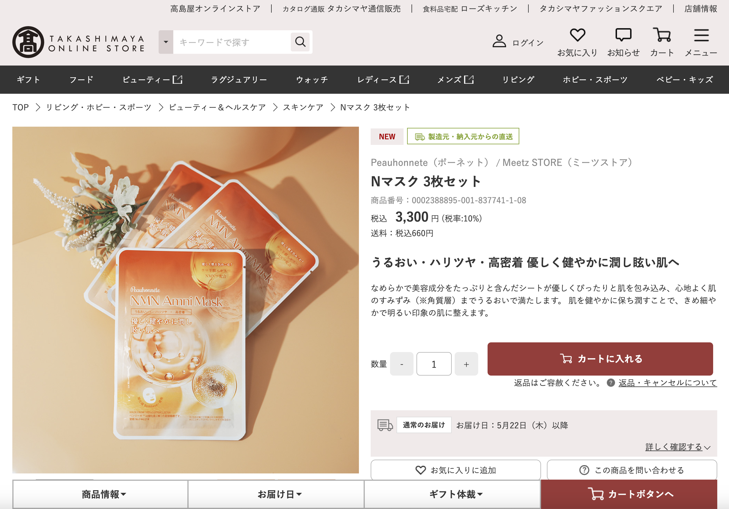 髙島屋オンラインストア 「ポーネット Nマスク」ページは こちら